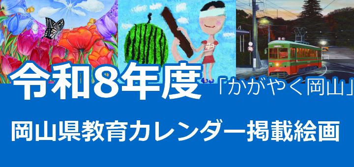 | 協賛 | 岡山県小学校長会 岡山県中学校長会 岡山県高等学校長協会 岡山県特別支援学校長会 岡山県小学校教育研究会図画工作部会 岡山県中学校教育研究会美術部会 岡山県高等学校教育研究会美術部会 |