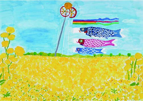 5月「鯉のぼりと菜の花」岡山大学附属小学校3年 髙原 友梨子岡山県小学校長会長賞