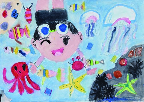 7月「海のいきものとわたし」倉敷市立児島小学校2年 三宅 莉心一般財団法人岡山県教育会理事長賞