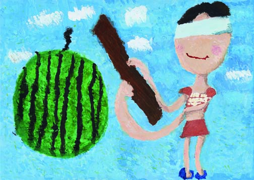 8月「すいかわり」倉敷市立第二福田小学校1年 笠原 なつめOHK岡山放送社長賞