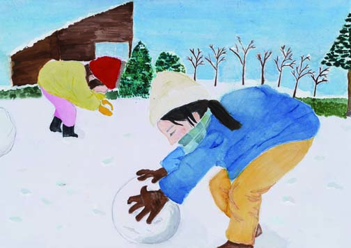2月「雪遊び」岡山県立岡山大安寺中等教育学校2年 土井 千聖公益財団法人日本教育公務員弘済会岡山支部長賞